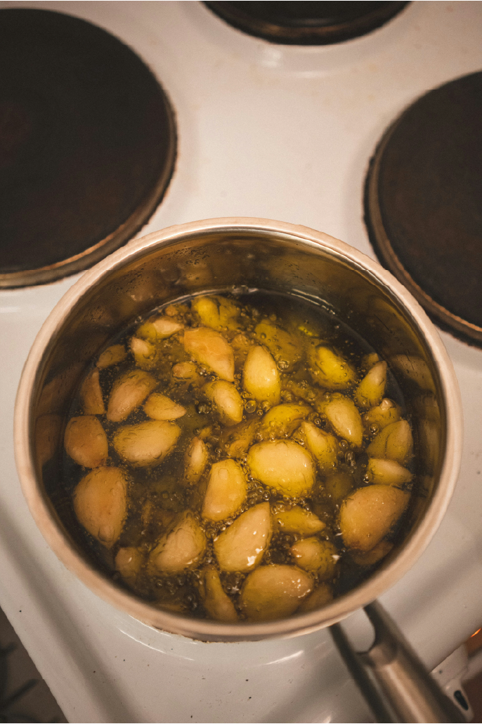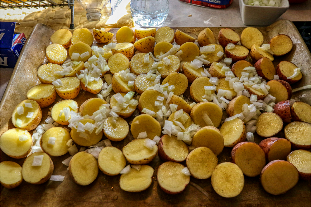 - 감자는 껍질을 벗기고 3~4등분으로 도톰하게 썬 뒤, 찜통이나 냄비에 물을 조금만 받아 채반을 얹고 중강불에서 15~20분간 포슬포슬하게 쪄줍니다. 감자가 잘 익었는지 젓가락으로 찔러 확인하세요. 삶아도 무방합니다.