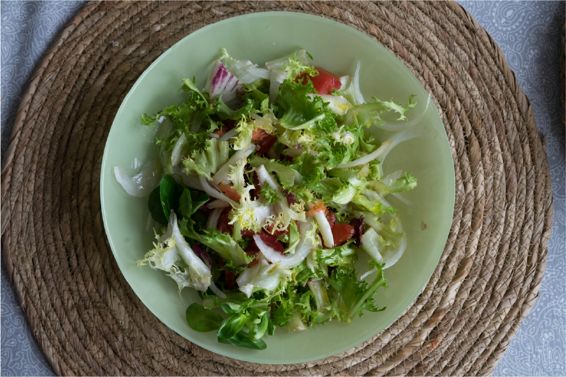 • 샐러드를 그릇에 담고, 남겨둔 달걀 노른자를 체에 내려 고슬고슬하게 위에 뿌려줍니다.