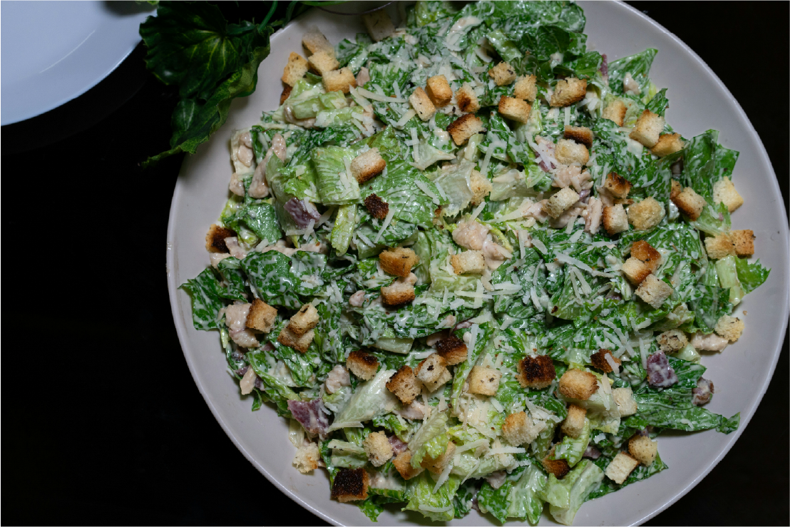 - 샐러드를 그릇에 담고, 남겨둔 달걀 노른자를 체에 내려 고슬고슬하게 위에 뿌려줍니다.