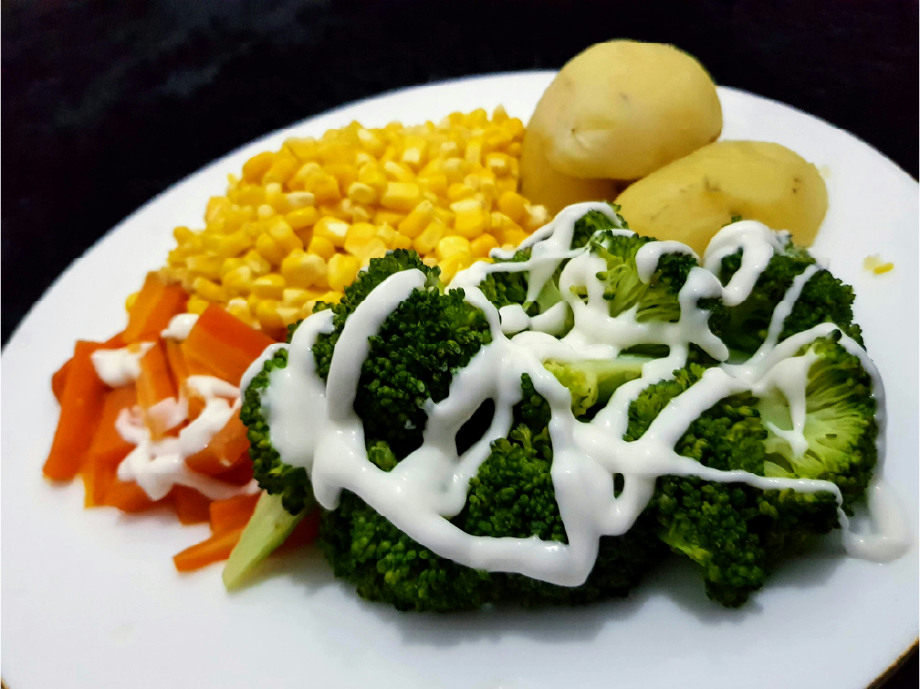 - 감자에 야채, 달걀 흰자, 마요네즈, 머스터드, 꿀, 설탕 등 넣고 잘 섞는다.
