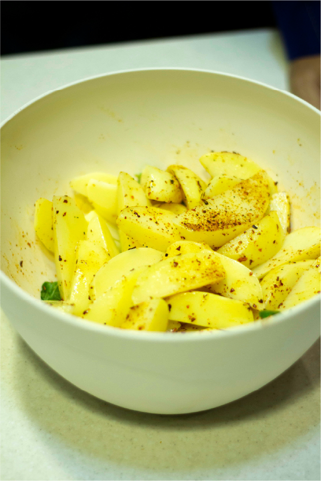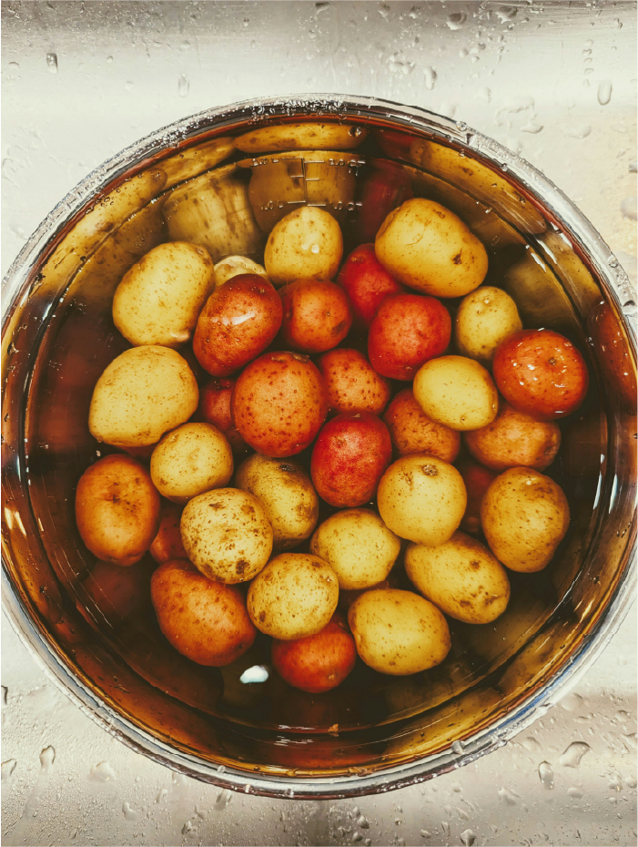 - 감자는 껍질을 깨끗이 벗기고, 흐르는 물에 한 번 헹궈줍니다.