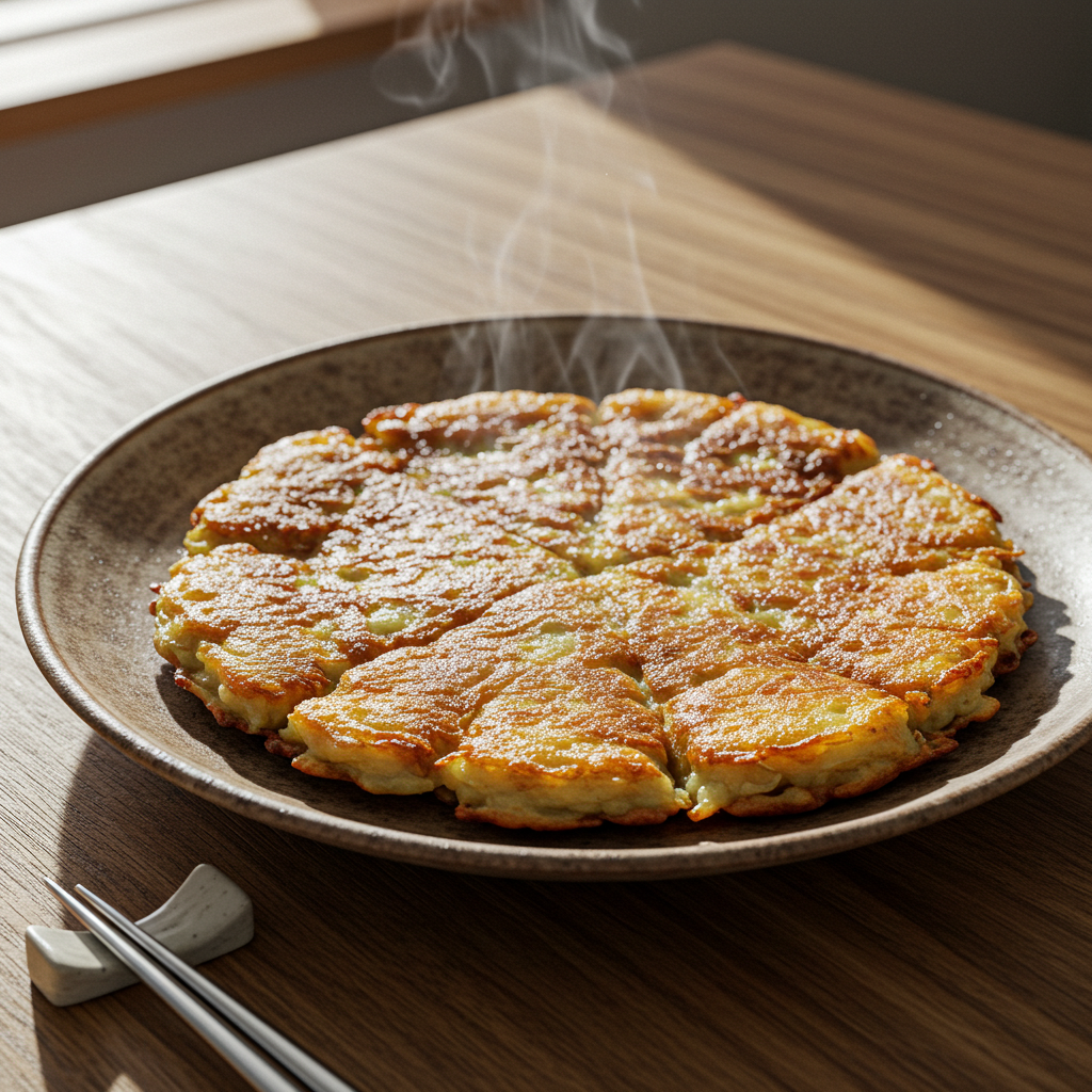 - 반대쪽도 노릇하게 익혀줍니다. 필요하면 기름을 추가로 둘러가며 바삭하게 부칩니다.