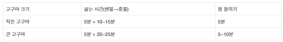 - 고구마 크기에 따라 10~30분까지 조절하세요