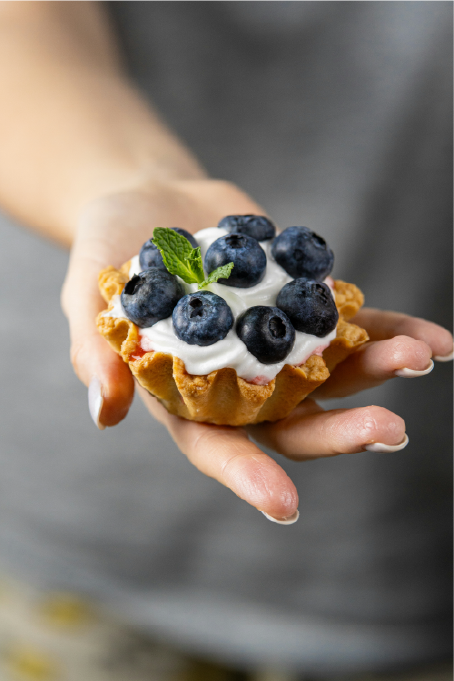 - 머핀, 파운드케이크, 팬케이크, 식빵 등 반죽에 냉동 블루베리를 넣어 베이킹합니다.
